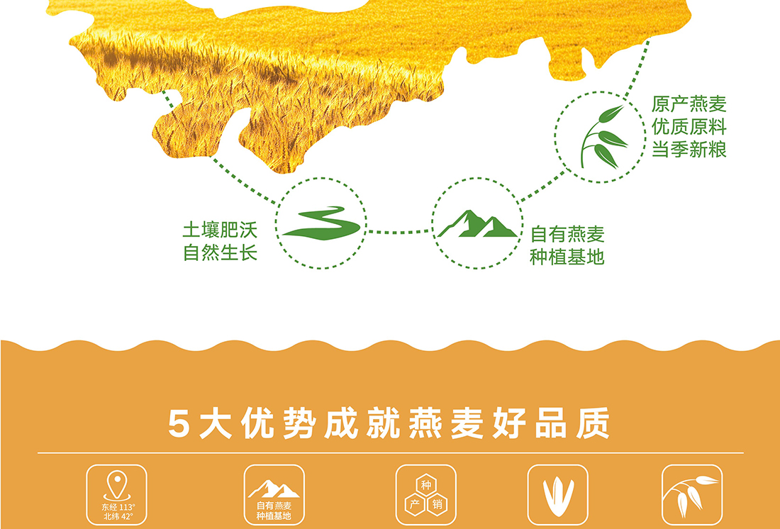 內(nèi)蒙古,世界裸燕麥起源地之一;陰山源生燕麥在此初生滿足生長(zhǎng)規(guī)律一切所需,高寒、高海拔、日照充足;遵循自然法則,靠天滋養(yǎng),自然生長(zhǎng);