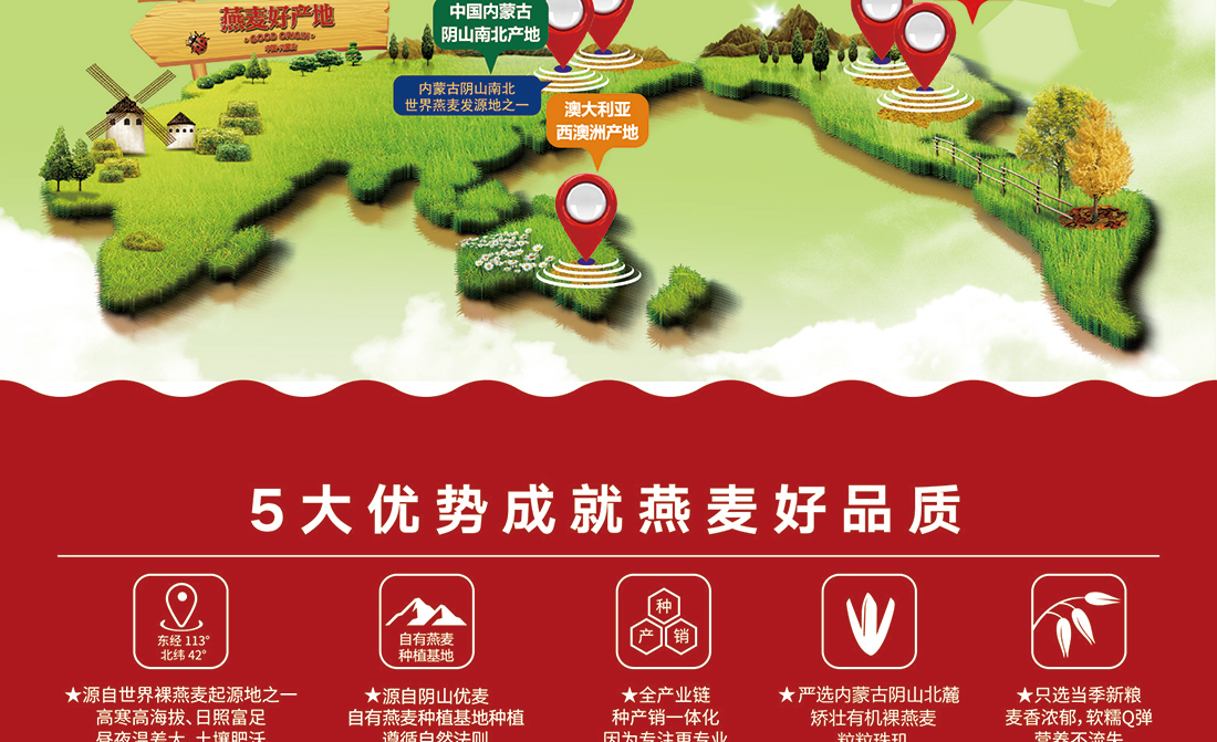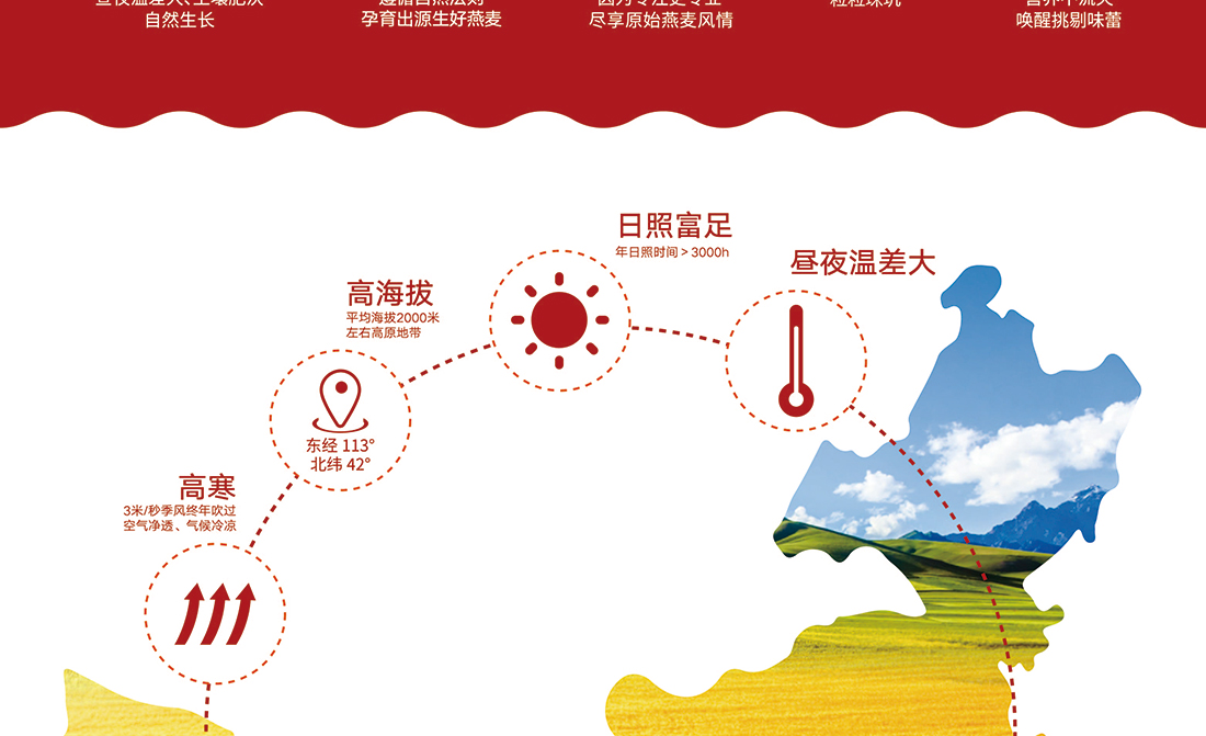 內(nèi)蒙古,世界裸燕麥起源地之一;陰山源生燕麥在此初生滿足生長(zhǎng)規(guī)律一切所需,高寒、高海拔、日照充足;遵循自然法則,靠天滋養(yǎng),自然生長(zhǎng);