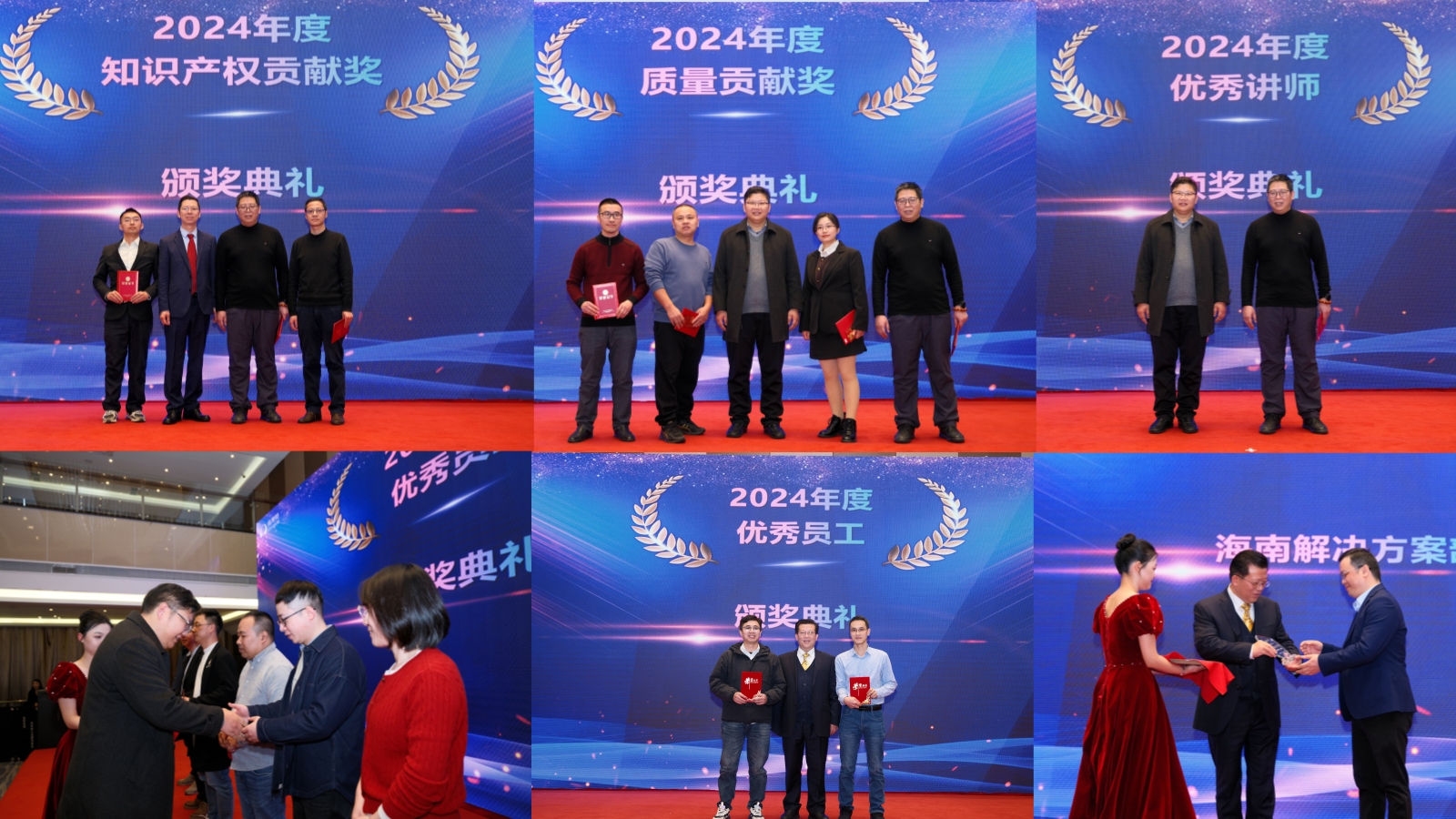 公司穩(wěn)健快速的發(fā)展,是公司領(lǐng)導(dǎo)科學(xué)管理的成果,也離不開每位員工的辛勤與貢獻(xiàn)。為感謝過去一年里,那些始終保持勤勉敬業(yè),在工作中表現(xiàn)突出的個人與部門,本次年會對2024 年度的進(jìn)步員工、優(yōu)秀員工、優(yōu)秀干部、優(yōu)秀講師及先進(jìn)部門,以及在質(zhì)量工作、知識產(chǎn)權(quán)工作中表現(xiàn)優(yōu)異的員工和團(tuán)隊予以表彰。在歡快音樂中,獲獎團(tuán)隊代表和個人意氣風(fēng)發(fā)走上舞臺,領(lǐng)取榮譽(yù)。這份榮譽(yù)是對他們過往努力的肯定,他們將繼續(xù)發(fā)揮模范帶頭作用,引領(lǐng)全體員工不斷奮進(jìn),向更高目標(biāo)邁進(jìn)!