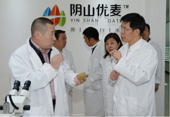 民豐種業(yè)董事長盧文兵對(duì)公司近年來的發(fā)展情況以及企業(yè)三產(chǎn)融合的實(shí)施布局情況向黃志強(qiáng)副主席進(jìn)行了詳細(xì)的匯報(bào)。近幾年,民豐種業(yè)已發(fā)展成為中國集馬鈴薯、燕麥研發(fā)、種子生產(chǎn)、分級(jí)加工、物流倉儲(chǔ)、推廣銷售于一體的現(xiàn)代化農(nóng)業(yè)企業(yè),是農(nóng)業(yè)產(chǎn)業(yè)化國家重點(diǎn)龍頭企業(yè)、國家高新技術(shù)企業(yè)、自治區(qū)扶貧龍頭企業(yè)。子公司陰山優(yōu)麥已發(fā)展成為中國燕麥深加工企業(yè),是自治區(qū)農(nóng)業(yè)產(chǎn)業(yè)化重點(diǎn)龍頭企業(yè)和自治區(qū)扶貧龍頭企業(yè),所生產(chǎn)的燕麥米、燕麥片、燕麥餐杯、燕麥高纖素等燕麥?zhǔn)称蜂N往全國二十多個(gè)省市,成為百姓餐桌上的大健康食品。子公司蒙薯食品“年產(chǎn)8000噸低溫油炸薯?xiàng)l、2000噸胡蘿卜脆片加工項(xiàng)目”也將于今年投產(chǎn)。