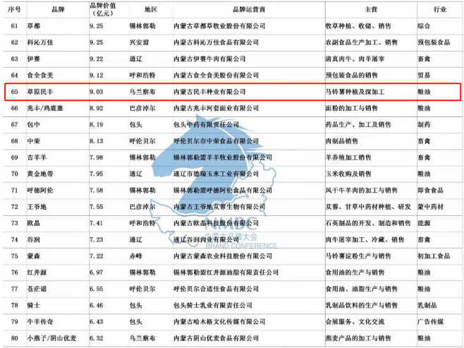 公司注冊有種薯“草原民豐”、鮮薯“敕勒川”和“塞宜德”、燕麥加工系列“陰山優(yōu)麥”等品牌商標,其中“草原民豐”2013年被授予“內(nèi)蒙古著名商標”,“草原民豐”牌馬鈴薯系列產(chǎn)品2013年被授信為“中國著名品牌”,并榮獲“第十一屆中國國際農(nóng)產(chǎn)品交易會參展產(chǎn)品金獎”。公司自主選育的馬鈴薯新品種“民豐紅”,被評定為內(nèi)蒙古“名優(yōu)特”產(chǎn)品,2010年獲“中國民營科技創(chuàng)新成果金獎”,2015年正式通過自治區(qū)品種認定,同年榮獲“自治區(qū)主席質(zhì)量獎”榮譽稱號。2017 年“民豐種業(yè)、草原民豐、敕勒川、塞宜德、陰山優(yōu)麥”品牌被評為內(nèi)蒙古農(nóng)畜牧產(chǎn)品市場領(lǐng)先品牌,2018年榮獲“自治區(qū)優(yōu)秀民營企業(yè)”稱號,2019年“草原民豐”品牌被評為“2019年內(nèi)蒙古馬鈴薯產(chǎn)業(yè)行業(yè)標志性品牌”,內(nèi)蒙古品牌價值評估值9.03億元,在內(nèi)蒙古品牌總榜單排名第65位。2020年在抗擊疫情過程中,被湖北慈善總會、烏蘭察布紅十字會、烏蘭察布橋東社區(qū)等多地授予“愛心企業(yè)”稱號。
