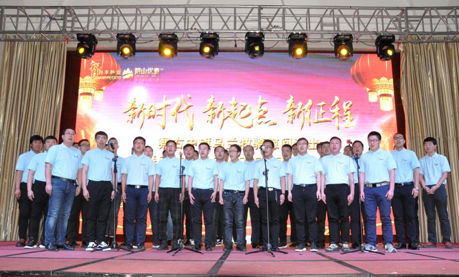 大會以播放短片的形式回顧了公司一年來的各項(xiàng)業(yè)務(wù)發(fā)展情況和取得的成績。副總經(jīng)理邰志東代表公司首先向全體人員致辭,而后在察右中旗烏蘭牧騎《時代贊歌》、《守望相助》的歌舞里拉開序幕。頒獎環(huán)節(jié),由22名優(yōu)秀行政管理人員、生產(chǎn)管理人員、生產(chǎn)服務(wù)人員、銷售人員和14個最佳效益獎、最佳質(zhì)量獎、最佳合作伙伴獎、優(yōu)秀團(tuán)隊(duì)獎、董事長特別獎的獲獎代表上臺接受了公司各級領(lǐng)導(dǎo)的頒獎和祝賀。同時,原種生產(chǎn)管理中心、脫毒組培中心、原種生產(chǎn)管理中心、物流倉儲中心用《民豐之歌》和《民豐我們的家》兩首大合唱表達(dá)了對公司的贊美和熱愛之情。最后,大會在烏蘭牧騎《在你偉大的懷抱里》的舞蹈里走向高潮。表彰大會和文藝演出穿插進(jìn)行,環(huán)環(huán)相扣,方式新穎,得到了全體員工的一致好評,也為即將開始的新春生產(chǎn)種植工作注入了活力,帶來了動力。