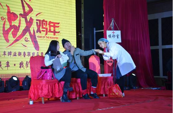 聯(lián)歡會演出在歡快活躍的的舞蹈《小雞舞》中拉開序幕。整場演出精彩紛呈,高潮迭起,洋溢著濃濃的喜悅氣氛。獨唱《最后的傾述》、《得民心者得天下》、配樂詩朗誦《民豐夢你走來》、舞蹈《向前沖》、情景劇《甄嬛后傳》……來自公司總部各部門和陰山優(yōu)麥有限公司的職工們用屬于自己的舞蹈迎接新年,用自己的歌聲歌唱美好,彰顯了民豐人團結(jié)、奮進的真善美和精氣神,也表達出了立足本職工作對企業(yè)的熱愛和美好明天的向往。小品《候診室的故事》則詼諧幽默、笑點頻出,編排匠心獨具,表演令人捧腹。平日里忙著各自工作的職工們走上舞臺,不亞于專業(yè)演員水平的表演,贏得了滿堂陣陣喝彩。最后,聯(lián)歡會在原種生產(chǎn)管理中心的大合唱《我們是民豐種業(yè)接班人》中落下帷幕。